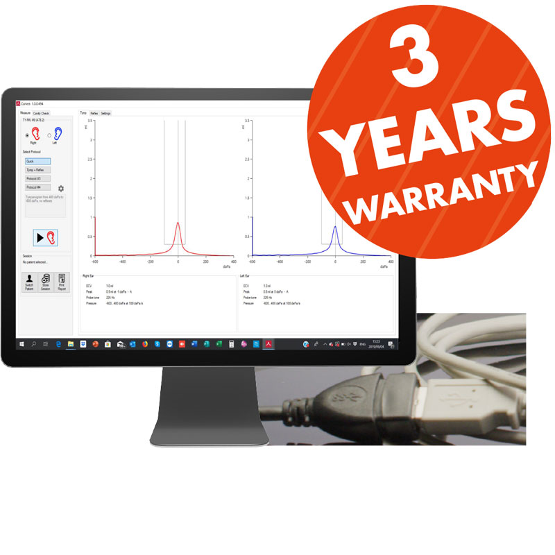 Simple USB connection: It‘s easy to connect nanoTymp via USB to your PC and operate it in the nanoTymp software. Unlike other Screening Tympanometers you can preview the left & right ear in real time and full color printouts can be created in seconds.