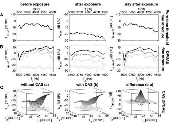 Unlike pure tone thresholds that assess both peripheral and central sound processing, distortion-product otoacoustic emissions (DPOAEs) selectively mirror the functioning of the cochlear amplifier. High resolution DPOAEs are missing in the toolbox of routine audiometry due to the fact that high resolution DPOAE measurements are more time-consuming when compared to normal clinical DP grams with rough frequency resolution. Measurements of high resolution DPOAEs allow an early assessment of beginning sensory cell damage due to sound overexposure or administration of ototoxic drugs. When using a rough grid, sensory cell damage would be overlooked as in the early state damage only appears at some distinct cochlear sites. A review is given on the method and application of high resolution DPOAEs.